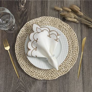 GUARDANAPOS TECIDO MARFIM BORDADO + PORTA GUARDANAPOS 12 PEÇAS